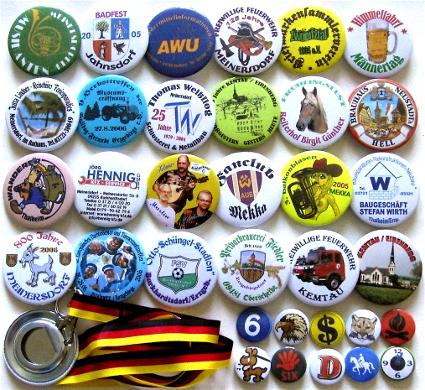 Logos, Fotobuttons, Anstecker für Fans